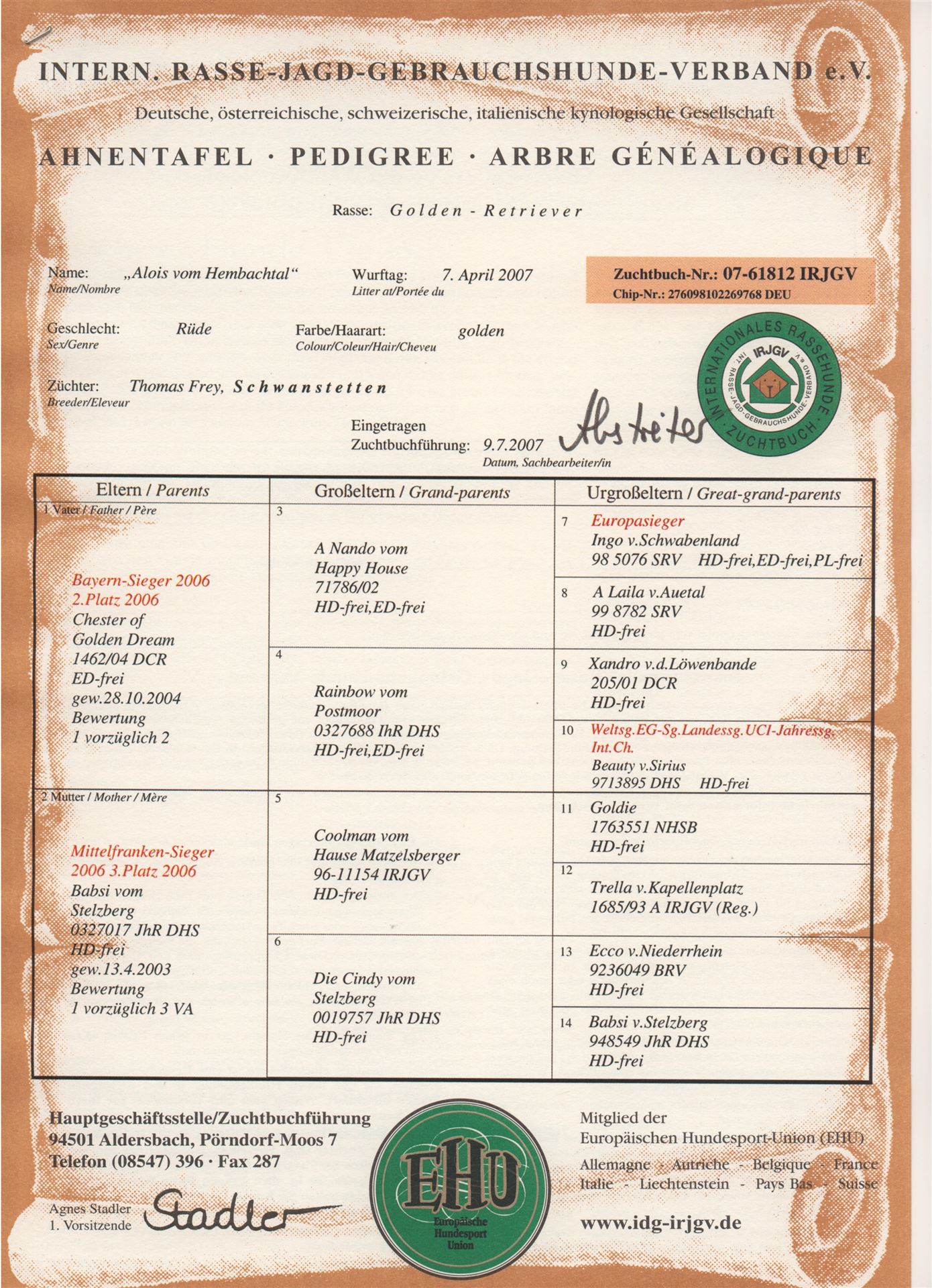 Der folgende Weblog soll der Familie ermöglichen über ihr Admin-Passwort Bilder und Kurztexte auf unserer Homepage einzustellen, um so die weitere Entwicklung unseres "Hembachtalers"zu dokumentieren.Wir die Züchter vom Hembachtal würden uns natürlich sehr freuen wenn wir ab und zu ein aktuelles Bildchen vorfinden würden, um weiterhin am Leben und der Entwicklung unserer Zöglinge teilhaben zu dürfen. (Achtung beim Passwort muß Groß- und Kleinschreibung berücksichtigt werden.)